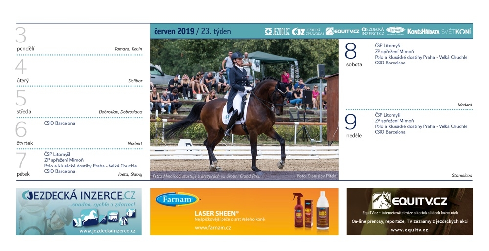 Červen ve stolním Jezdeckém kalendáři 2019