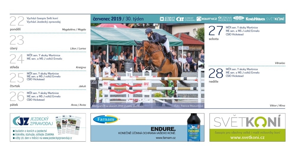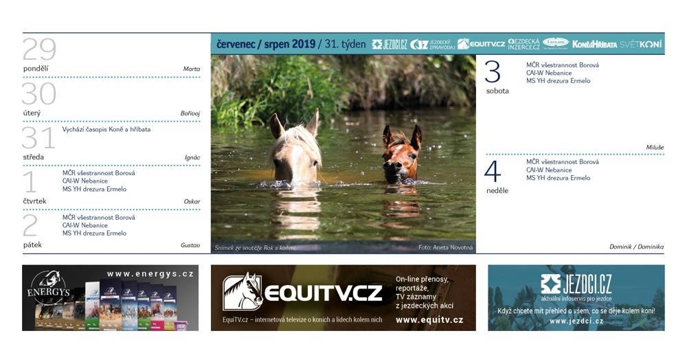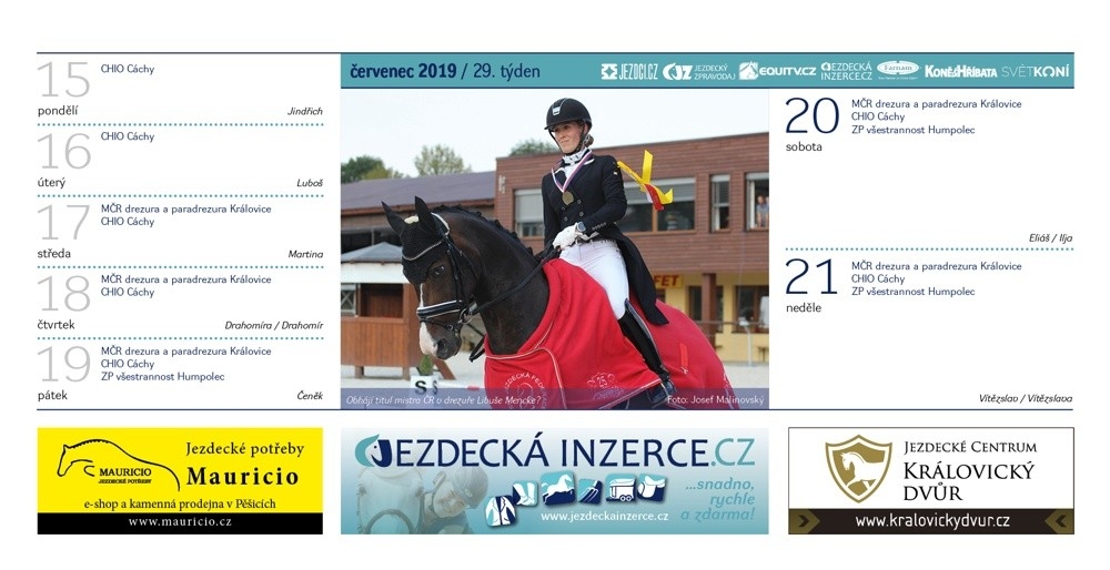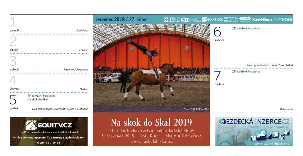 Červenec ve stolním Jezdeckém kalendáři 2019