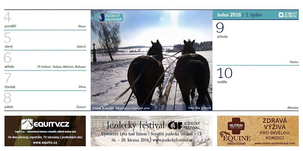 Výroba 10.000 kusů stolního Jezdeckého kalendáře 2016 se stovkami termínů zajímavých jezdeckých akcí v České republice, na Slovensku i na dalších zahraničních kolbištích již finišuje! Do bezplatné distribuce půjde od úterý 1. prosince 2015...