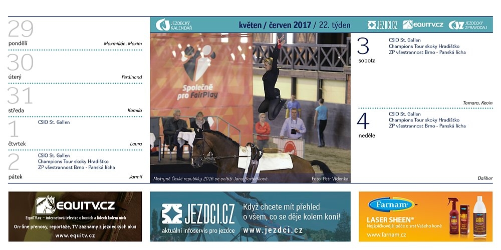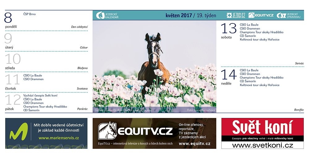 V průběhu listopadu vám průběžně odtajňujeme obsah třetího vydání stolního Jezdeckého kalendáře. Ten s číslovkou 2017 bude v distribuci od začátku prosince. I vy můžete mít jeden z desítky tisíc výtisků zcela ZDARMA! Prohlédněte si květnové stránky!…