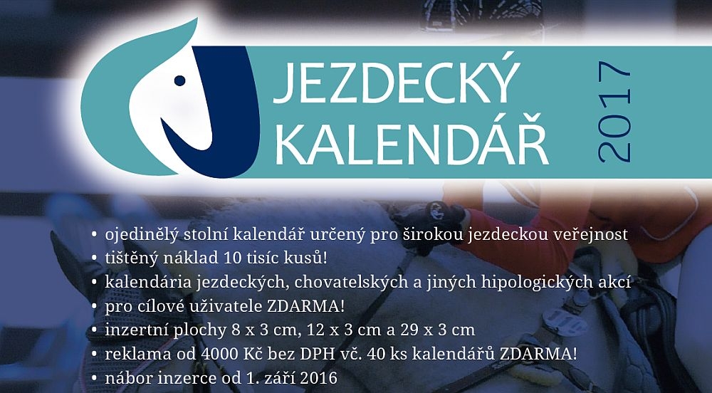 Pokud chcete i vy mít svoji prezentaci ve stolním Jezdeckém kalendáři 2017, který vyjde v 10tisícovém nákladu již 1. prosince a bude pro cílové uživatele ZDARMA, máte možnost již jen do tohoto pátku 21. října!...