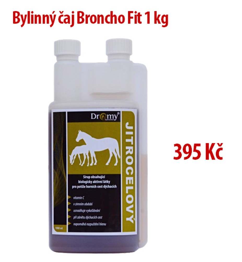 Pro zdravé dýchací cesty a průdušky koní vyzkoušejte nový bylinný čajík Broncho Fit za výhodnější cenu (440 Kč, balení 1 kg), pro všechny dušné nebo nachlazené koníky. Příznivě působí na horní i dolní cesty dýchací. Lze jej užívat při rýmě, kašli, dušnosti. Výborný je také jako podpora při léčbě antibiotiky, při akutních i chronických onemocněních.