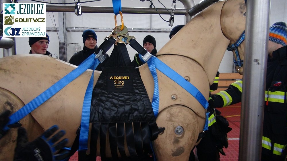 Praktická část výuky nejprve probíhala kvůli mrazivým teplotám v hale, kde se hasiči učili nasazovat novou záchrannou síť na maketu koně. Tato síť byla pardubickým hasičům věnována prostřednictvím veřejné sbírky sdružení EDUvet.cz. Finanční prostředky na její zakoupení darovala společnost Equinet s.r.o. – vydavatel portálu Jezdci.cz, internetové televize EquiTV, Jezdeckého zpravodaje, katalogu a kalendáře.