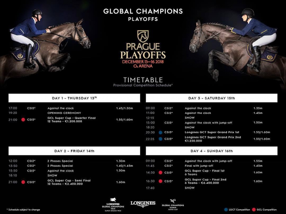 Dva týdny před startem galashow světového parkuru Global Champions PlayOffs 2018 v pražské O2 areně pořadatelé ukončili prodej čtyřdenních permanentek a zbývající místa ve vyhrazených TOP sektorech pustili do volného prodeje na jednotlivé dny!
