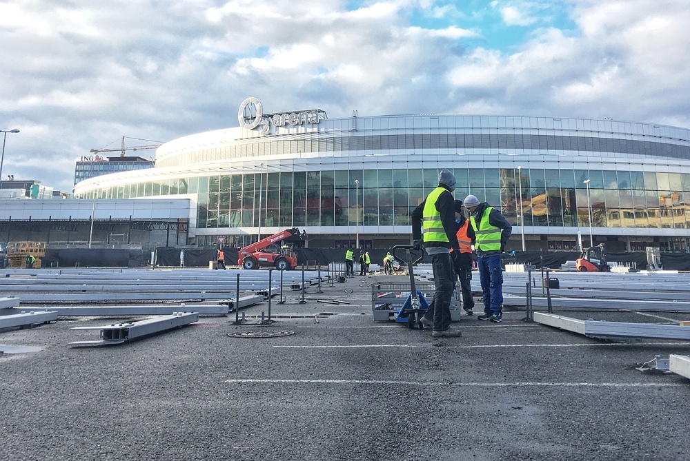 Přípravy v O2 areně finišují zatím technickými zkouškami, organizátoři se nastěhují do multifunkční haly po skončení probíhajícího mistrovství světa ve florbale. Na prostranství v okolí haly však už je vidět čilý ruch: rostou první stavby. Vše jde podle připraveného harmonogramu, i když ledovka, která v minulých dnech proměnila část Česka v kluziště, přiměla organizátory Prague PlayOffs 2018 k některým úpravám. „Předpověď počasí sledujeme každý den,“ říká Jan Andrlík, předseda organizačního výboru soutěže. „Počasí by pro nás mělo být příznivé, s teplotami kolem nuly.“