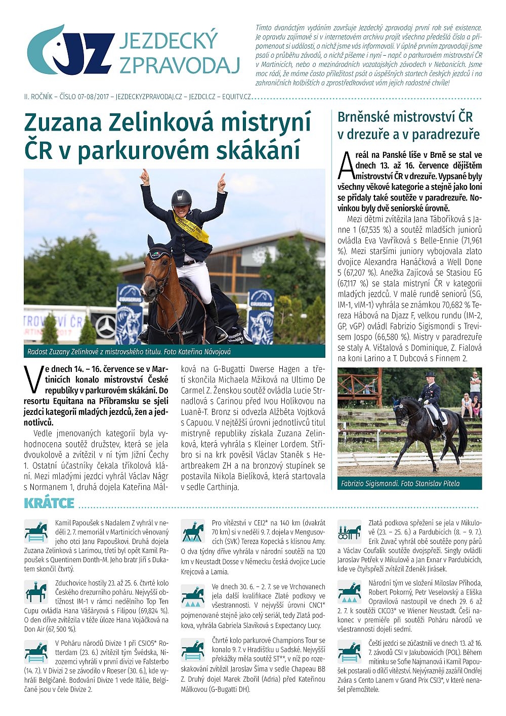 Červencové číslo Jezdeckého zpravodaje 2017 – bulletinu o koních a jezdectví – je ZDARMA na webu ke stažení, k vytištění, čtení, sdílení či k dalšímu šíření! Opět v něm najdete vše podstatné, co se za uplynulý měsíc v jezdeckém sportu odehrálo…