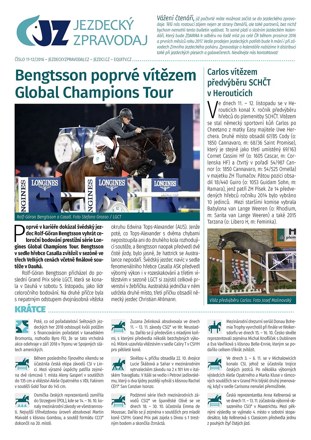 Listopadové číslo Jezdeckého zpravodaje 2016 – bulletinu o koních a jezdectví – je ZDARMA na webu ke stažení, k vytištění, čtení, sdílení či k dalšímu šíření! Opět v něm najdete vše podstatné, co se za uplynulý měsíc v jezdeckém sportu odehrálo…