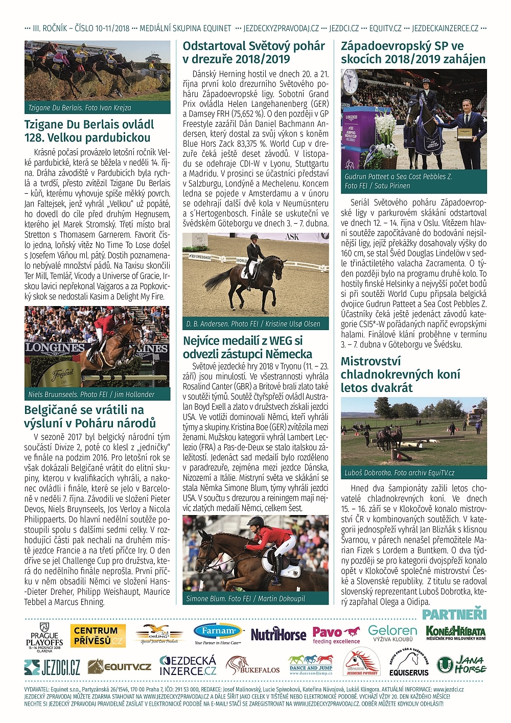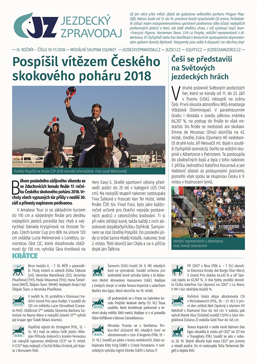 Říjnové vydání Jezdeckého zpravodaje 2018 – bulletinu o koních a jezdectví – je ZDARMA na webu ke stažení, k vytištění, čtení, sdílení či k dalšímu šíření! Stejně jako předchozí čísla, i toto je nabité články ze závodů konaných v uplynulém měsíci.
