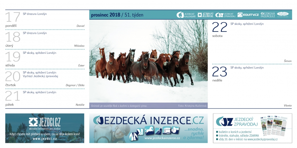 Prosinec ve stolním Jezdeckém kalendáři 2018
