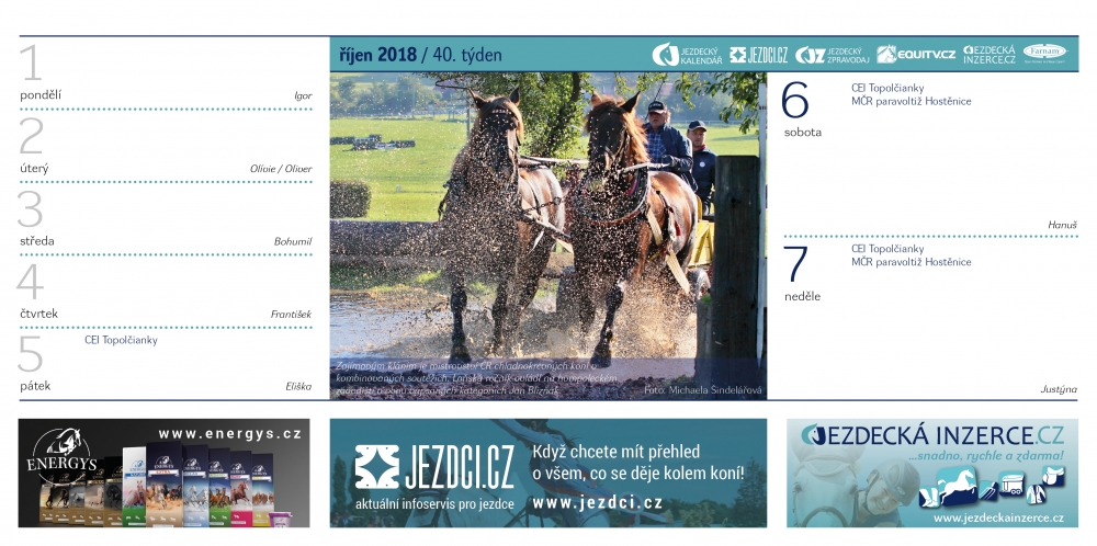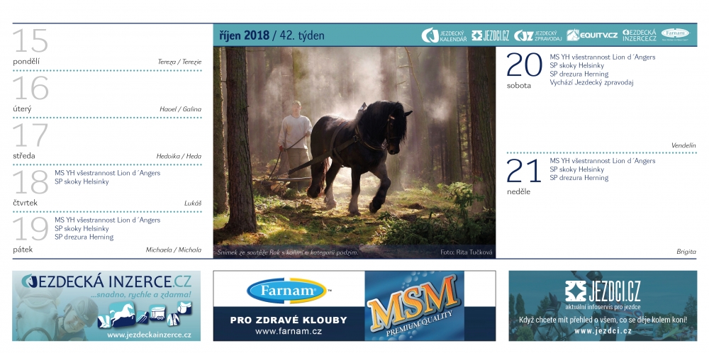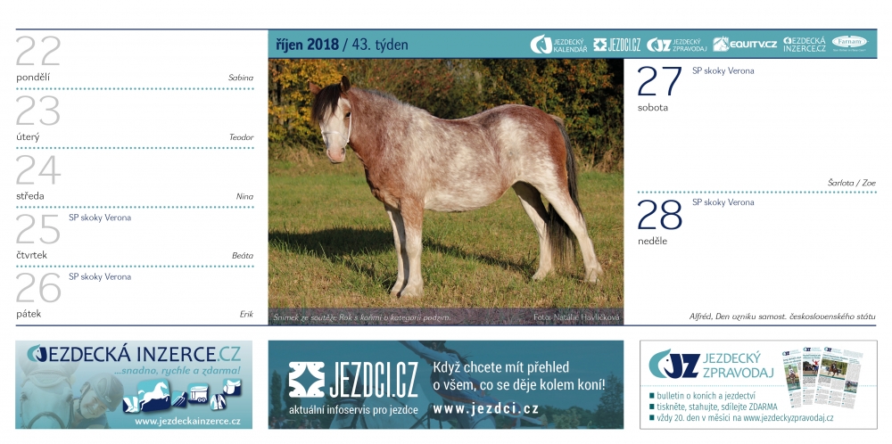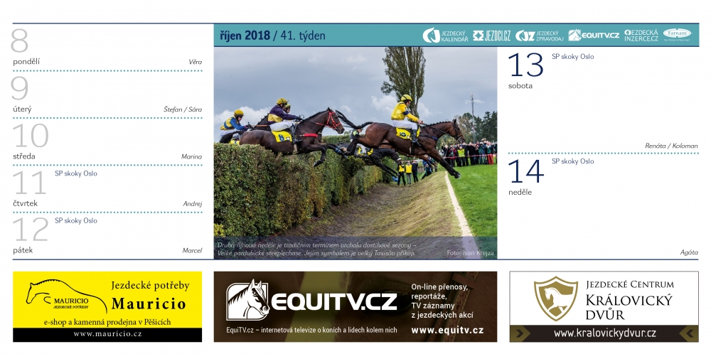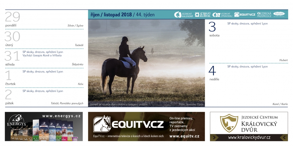 V průběhu listopadu a prosince vám budeme postupně odhalovat obsah čtvrtého vydání stolního Jezdeckého kalendáře. Kalendář pro rok 2018 bude v distribuci od začátku prosince. I vy můžete mít jeden z desítky tisíc výtisků zcela ZDARMA! Čtěte dál...