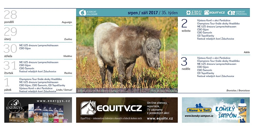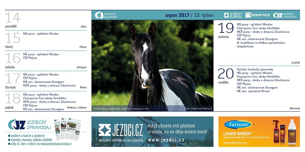 V průběhu listopadu průběžně odtajňujeme obsah třetího vydání stolního Jezdeckého kalendáře. Ten s číslovkou 2017 bude v distribuci od začátku prosince. I vy můžete mít jeden z desítky tisíc výtisků zcela ZDARMA! Prohlédněte si srpnové stránky!…