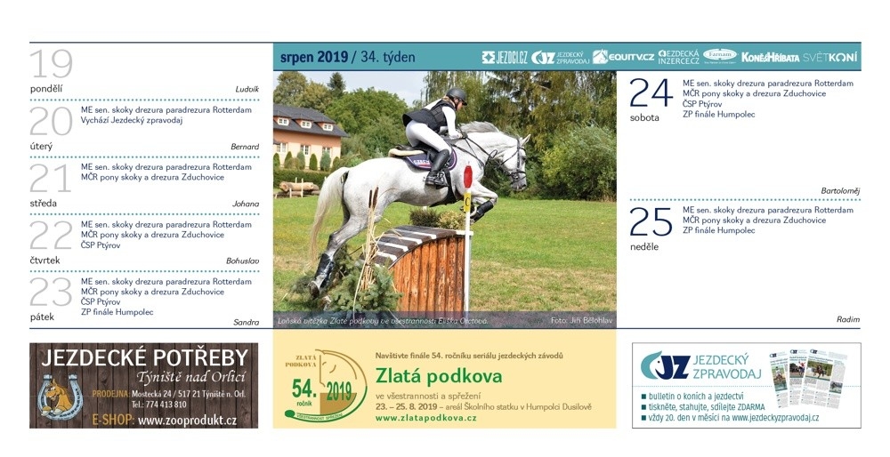 Srpen ve stolním Jezdeckém kalendáři 2019