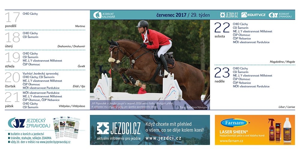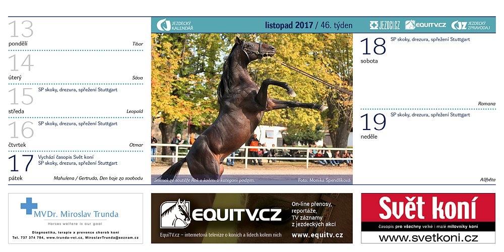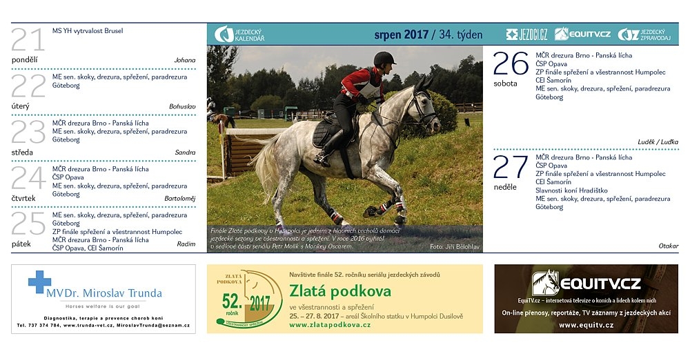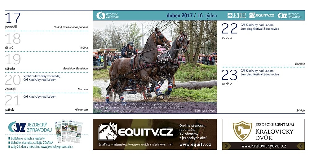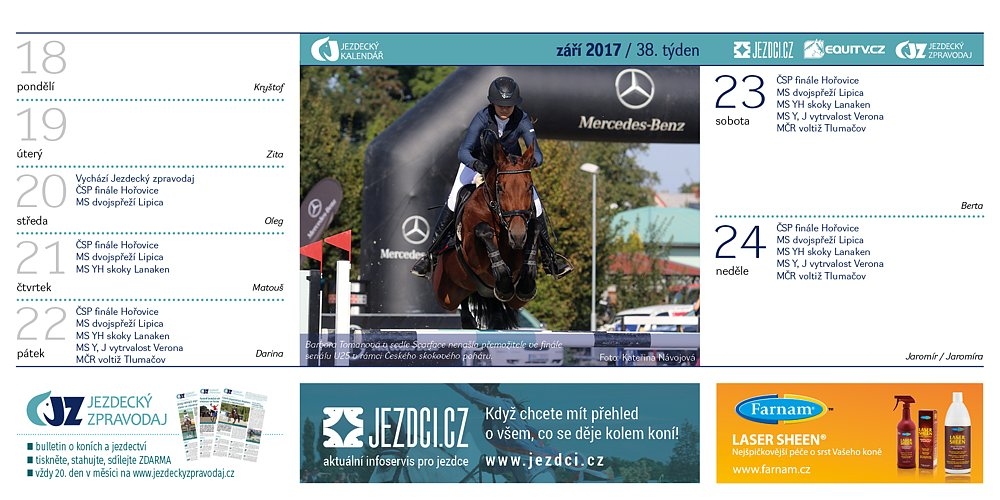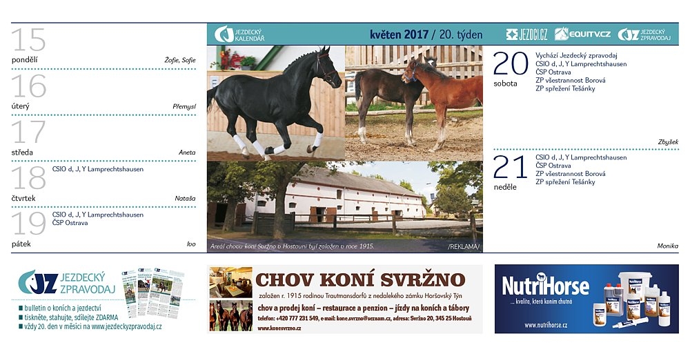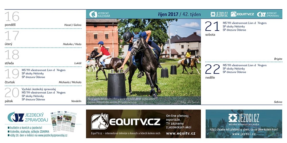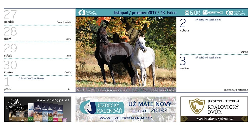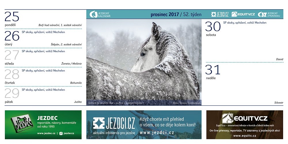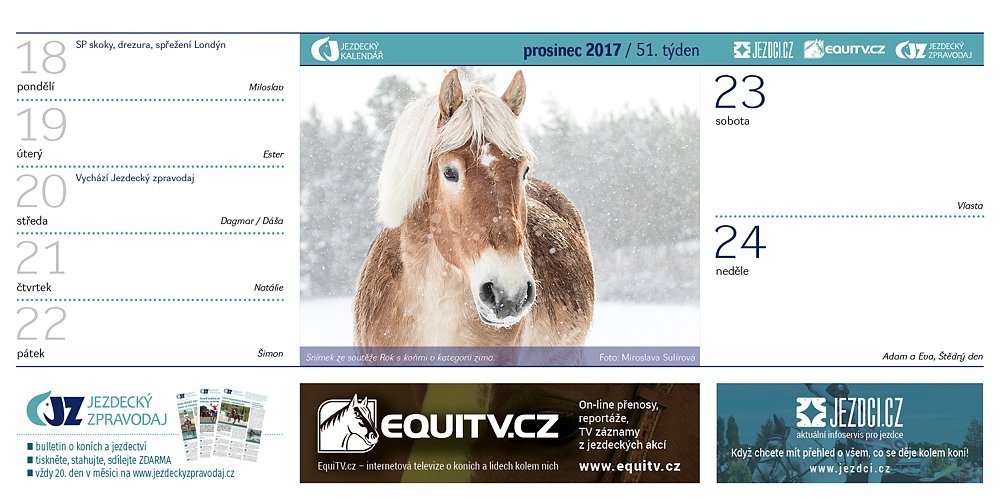 Se začátkem prosince odstartovala distribuce stolních Jezdeckých kalendářů 2017. Každý všední den je rozvážíme na různá místa po celé České republice, kde si je můžete vyzvednout ZDARMA! Kalendáře si také můžete prohlédnout či stáhnout na webu!...