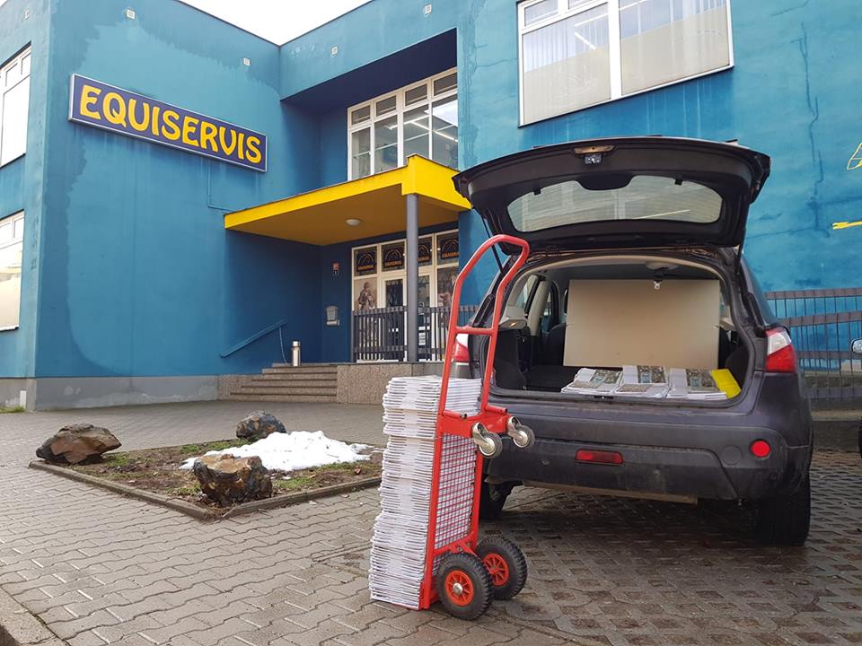 Během prvního dne distribuce stolních Jezdeckých kalendářů 2019 jsme 3. prosince na odběrná místa a pro naše partnery rozvezli zhruba 2.500 výtisků! Pro ten svůj se můžete např. zastavit do poboček Equiservisu, Equestrians, Můj kůň nebo Horse Style…