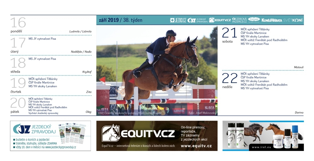 Září ve stolním Jezdeckém kalendáři 2019