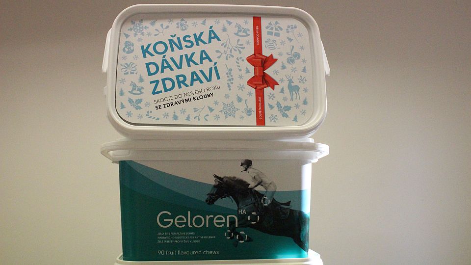 Vánoce se blíží mílovými kroky, proto už teď najdete Geloren HA ve vánočním balení. Právě pod víkem tohoto balení naleznete unikátní soutěžní kód. Zadejte ho na stránkách Aktivní zvíře a tipněte si správnou odpověď na soutěžní otázku: Kolik gramů kyseliny hyaluronové bylo spotřebováno pro výrobu Gelorenu HA od jeho uvedení na trh v roce 2014? Třicet soutěžících s nejpřesnějším tipem odměníme třemi kyblíky Gelorenu HA!