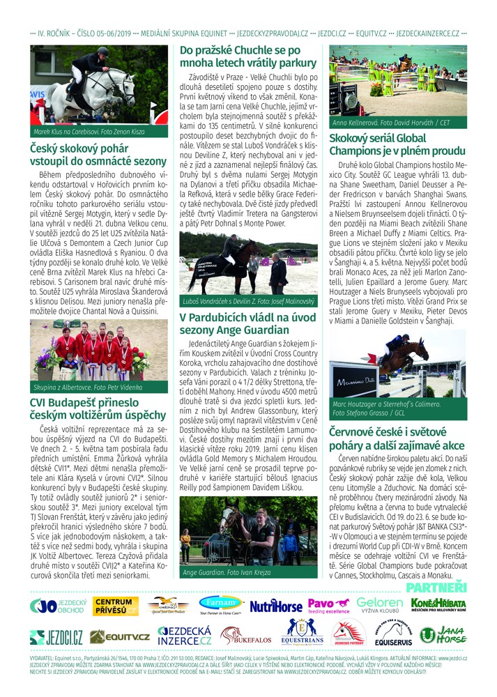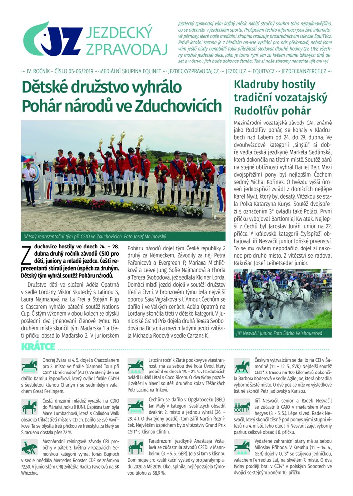 S postupující sezonou je čím dál těžší vměstnat všechny důležité jezdecké akce do Jezdeckého zpravodaje. V jeho vydání s číslem 05-06 vám připomeneme české úspěchy na CSIO Zduchovice, start ČSP, pokračování Global Champions, dostihy a mnohem více.