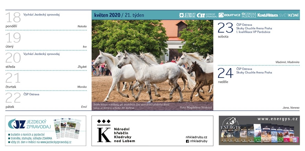 Květen ve stolním Jezdeckém kalendáři 2020. Objednejte si ho domů