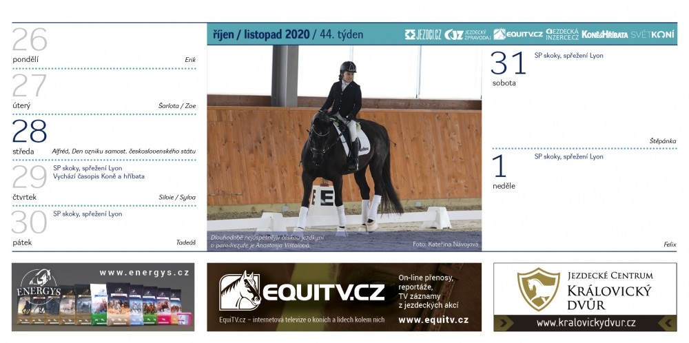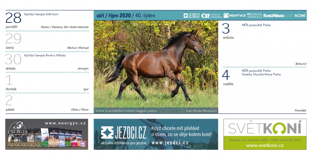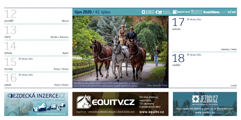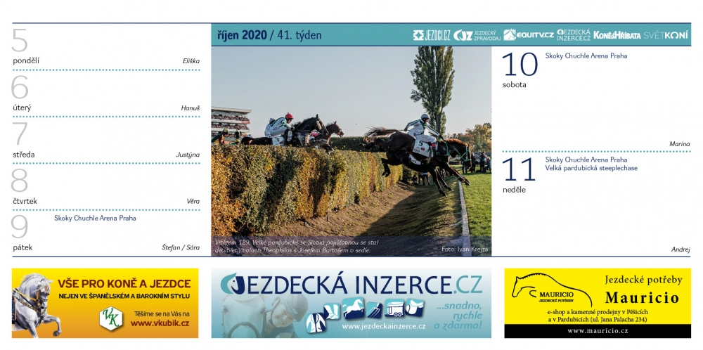 Stejně jako v předchozích letech, ani v roce 2020 nebudete ochuzeni o Jezdecký kalendář, v kterém najdete řadu krásných koňských fotek a také termíny všech důležitých akcí. Objednejte si ho až domů. Třeba jako vánoční dárek.