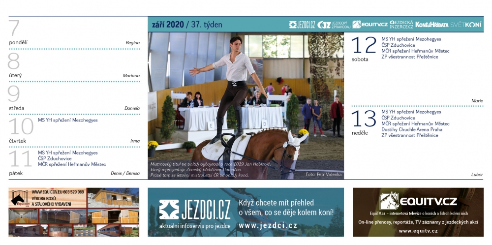 Září ve stolním Jezdeckém kalendáři 2020. Objednejte si ho domů