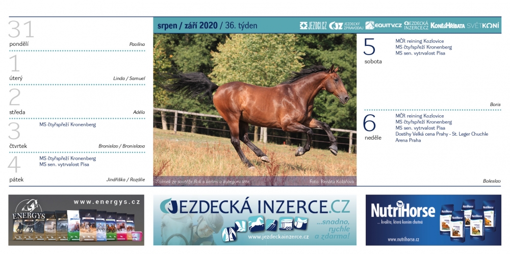 Stejně jako v předchozích letech, ani v roce 2020 nebudete ochuzeni o Jezdecký kalendář, v kterém najdete řadu krásných koňských fotek a také termíny všech důležitých akcí. Objednejte si ho až domů. Třeba jako vánoční dárek.