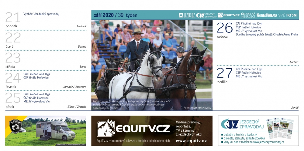 Během prvních prosincových dní bude stolní Jezdecký kalendář 2020 rozvážen do distribučních míst, jejichž průběžně aktualizovaný seznam najdete na stránkách www.jezdeckykalendar.cz